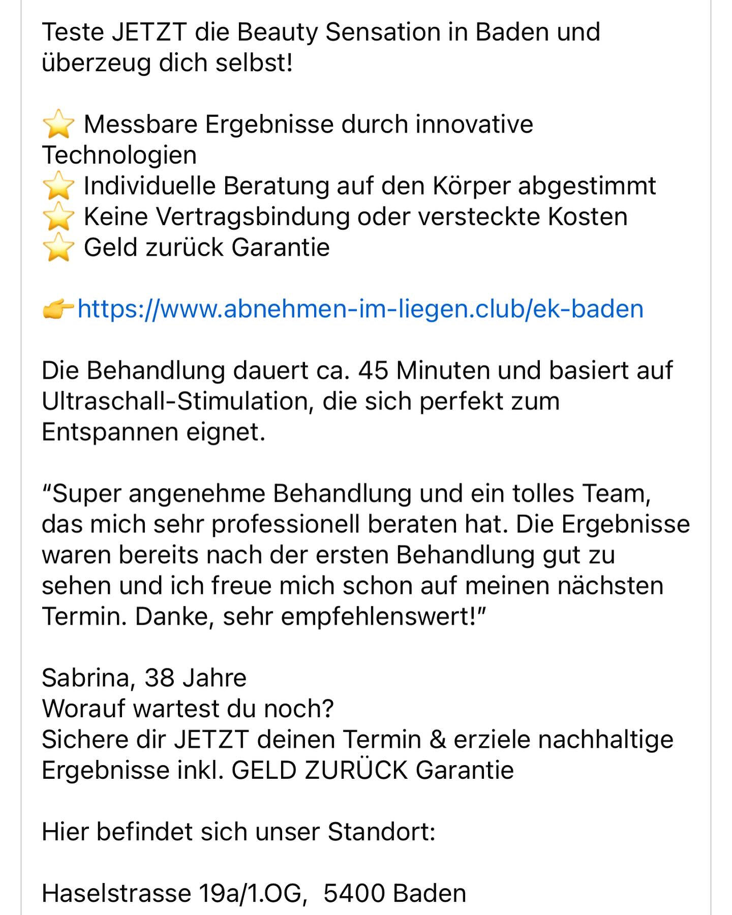 Nach nur 40 entspannten Minuten garantieren wir Ihnen ein Minimum von zwei Zentimetern weniger Umfang – oder Sie erhalten 100 % Ihres Geldes zurück. Viele Kundinnen und Kunden verzeichnen sogar drei bis sechs Zentimeter weniger – völlig schmerzfrei, ohne Nebenwirkungen und mit einer professionellen Betreuung.